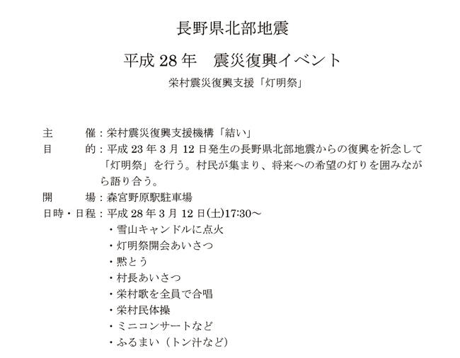 長野県北部地震 平成28年震災復興イベントのお知らせ